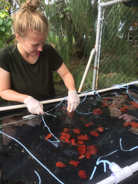 Throughout university I developed a great interest in coral reef ecology, particularly in the face of climate change and how this impacts ecosystem services. As part of my masters degree I had to undertake a two month research placement which could be completed anywhere in the world. I knew I wanted to work with corals and gain more field work experience, and from previous students I also knew lots of great coral research was being conducted in Hawai’i. After talking to lots of fantastic researchers at the Hawai’i Institute of Marine Biology I learned that there was an opening for someone to conduct research on sponges living in the bay. In all honesty, I didn’t know an awful lot about sponge ecology at this point, but what better way to find out more! Thankfully the great people at the ToBo lab thought I was up to the job, and that’s how I ended up snorkeling in Hawai’i all summer!