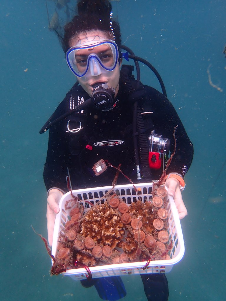 When was finishing my bachelor I had the opportunity to take my open water and advanced open water diving courses. One of the last dives was in a coral reef ruins, it was dark and without the marine life I was expecting, and that changed my life. After that experience, I knew that I wanted to work on coral reefs and be part of the solution, and that is how I looked for a master’s program that could give me the opportunity to learn and make a research on coral restoration. Then I got to work with the best experts ever.