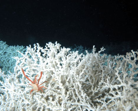 Die symbiotische Beziehung zwischen der Koralle Desmophylum pertusum und dem Wurm Eunice norvegica ist ebenso faszinierend wie die Symbiose zwischen Clownfisch und Anemone, wenn auch nicht so bekannt. Der Wurm stiehlt Nahrung aus den Korallenpolypen, aber zahlt die Schulden zurück, indem er Korallenfragmente zusammenbewegt, um das Riffgerüst zu stärken. Darüber hinaus nutzen kommerziell interessante Fischarten Tiefseekorallen und Schwammhabitate als Kinderstube und Futterplätze und viele andere Wirbellose lassen sich an den Gipfeln der Riffe nieder, um sich filtrierend im Meeresboden nahen, langsam fließenden Wasser zu ernähren.