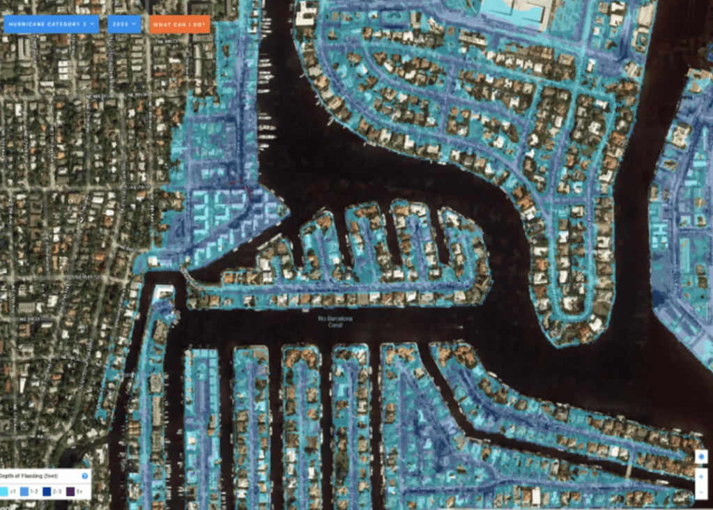 Another metric the researchers used to quantify the value reefs provide in the event of coastal storms was a scenario in which the top one meter of reef height was lost. The computer model that the researchers used for this project included the ability to project fine-scale (very detailed) modelling of floods both with and without the top one meter of coastal reefs. If the top one meter of reef height was lost, 90% more coastal property would be affected by flooding, increasing damage costs by a whopping $5.3 billion USD. The study also assessed how the loss of reefs would impact the 100 year flood zone. The 100 year flood zone is a term that describes the occurrence and severity of floods by referring to the area of land that has a 1% chance, or 1-in-100 chance, of flooding in any given year. These damages would increase the 100-year flooding zones by 23%, impacting 53,800 more people (a 62% increase from those who would be otherwise affected).