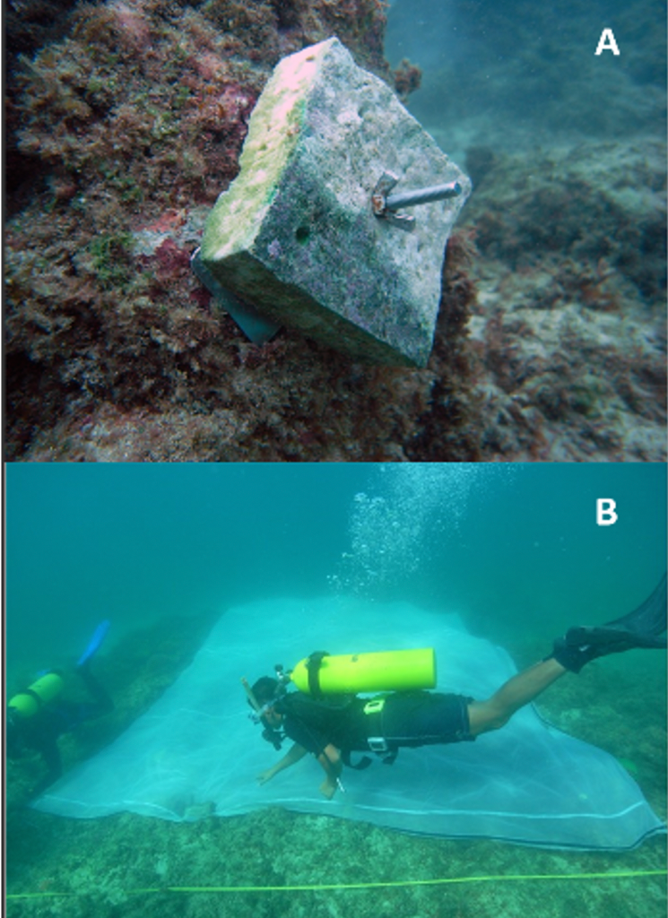 From two nearby reefs, Cruz and Harrison took 25 gravid (pregnant) colonies of Bluetip coral to the Bolinao Marine Laboratory to spawn (reproduce). After the colonies spawned in the lab, the larvae were collected and then transported to the destination reef. They designated one section with three plots to place the lab larvae, and another section where they didn’t add any of their larva to serve as a control. Each plot had ten settlement tiles made of dead Bluetip coral so they could visually monitor the settlement better. They released the larvae at the designated section and a fine mesh enclosed the area for five days so the larva could settle. After the initial five days the mesh was removed and there was periodic monitoring for the next 35 months.