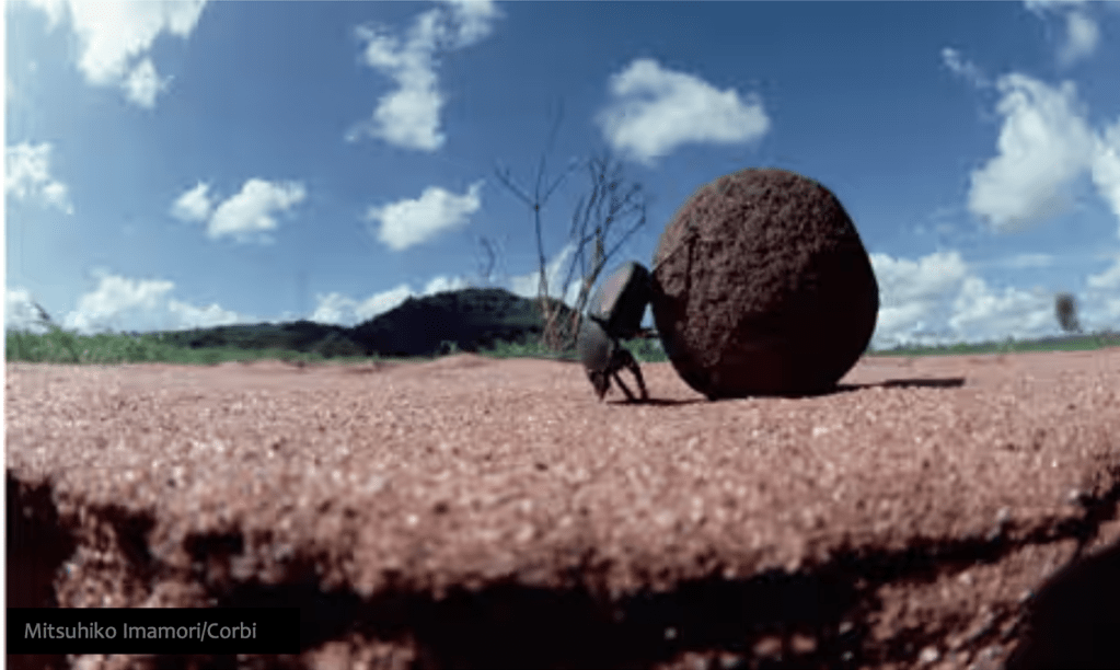 Figure 2. Dung beetles roll their balls in straight lines back to their burrows, using polarized light for orientation during the day. Incredibly, they navigate at night by the stars in the Milky Way.