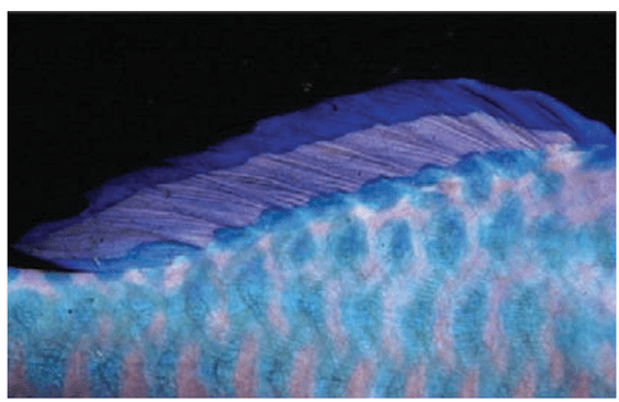 Figure 3. Color pattern found in parrotfish, where contrasting color patches are formed, helping with camouflage. (Image: Marshall and Cheney, 2011).